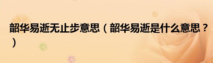 大家好,小安来为大家解答以上问题。韶华易逝无止步意思,韶华易逝是什么意思?很多人还不知道,现在让我们一起来看看吧!