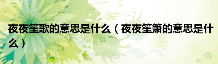 2、 每天晚上,每天晚上。笙,一种管乐器,常用的有几种大小。它是由几根带有弹簧的竹管和一根安装在盘状底座上的吹管组成的。击指的是弹、唱、跳。夜夜笙歌,描写帝王将相生活奢侈,不道德。现在用“夜夜笙歌”这个词来形容一个人的放荡。