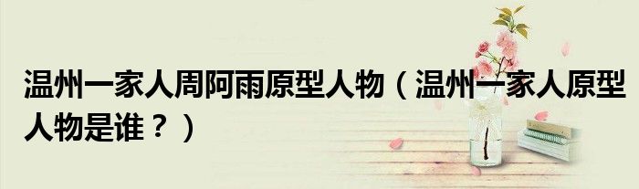 大家好,小安来为大家解答以上问题。温州一家人周阿雨原型人物,温州一家人原型人物是谁?很多人还不知道,现在让我们一起来看看吧!