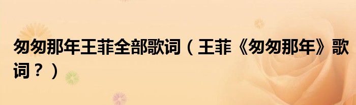 大家好,小安来为大家解答以上问题。匆匆那年王菲全部歌词,王菲《匆匆那年》歌词?很多人还不知道,现在让我们一起来看看吧!