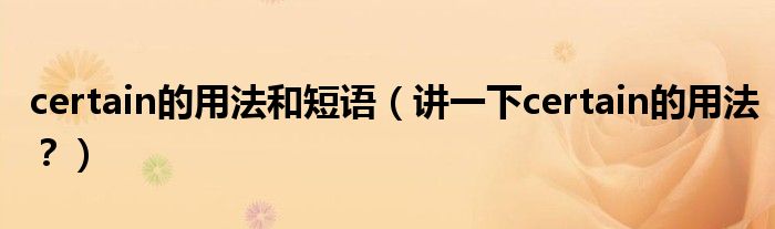 大家好,小安来为大家解答以上问题。certain的用法和短语,讲一下certain的用法?很多人还不知道,现在让我们一起来看看吧!