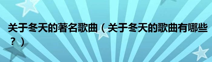 大家好,小安来为大家解答以上问题。关于冬天的著名歌曲,关于冬天的歌曲有哪些?很多人还不知道,现在让我们一起来看看吧!
