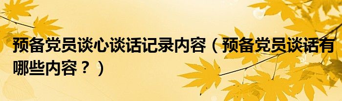 大家好,小安来为大家解答以上问题。预备党员谈心谈话记录内容,预备党员谈话有哪些内容?很多人还不知道,现在让我们一起来看看吧!