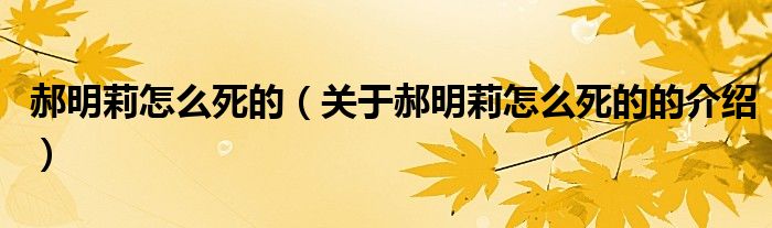 大家好,小安来为大家解答以上的问题。郝明莉怎么死的,关于郝明莉怎么死的的介绍很多人还不知道,现在让我们一起来看看吧!