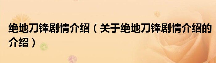 大家好,小安来为大家解答以上的问题。绝地刀锋剧情介绍,关于绝地刀锋剧情介绍的介绍很多人还不知道,现在让我们一起来看看吧!