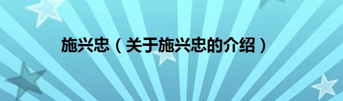 大家好,小安来为大家解答以上的问题。施兴忠,关于施兴忠的介绍很多人还不知道,现在让我们一起来看看吧!