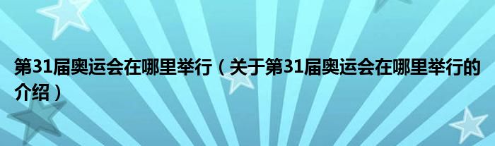 大家好,小安来为大家解答以上的问题。第31届奥运会在哪里举行,关于第31届奥运会在哪里举行的介绍很多人还不知道,现在让我们一起来看看吧!