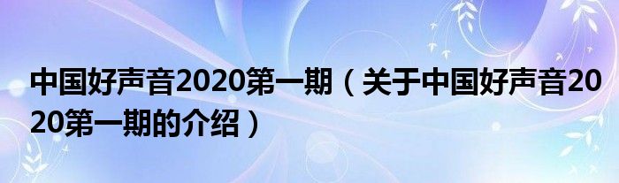 大家好,小安来为大家解答以上的问题。中国好声音2020第一期,关于中国好声音2020第一期的介绍很多人还不知道,现在让我们一起来看看吧!