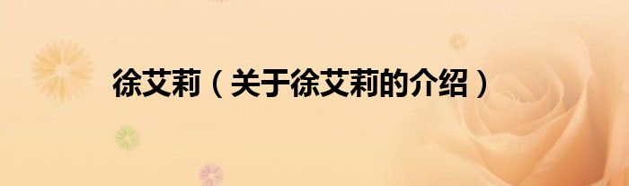 大家好,小安来为大家解答以上的问题。徐艾莉,关于徐艾莉的介绍很多人还不知道,现在让我们一起来看看吧!