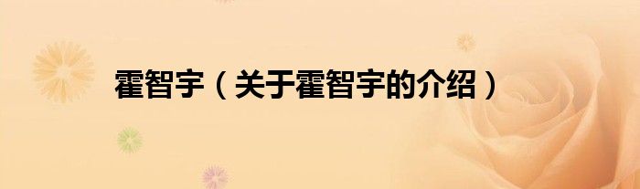 大家好,小安来为大家解答以上的问题。霍智宇,关于霍智宇的介绍很多人还不知道,现在让我们一起来看看吧!