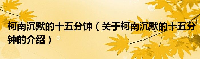 大家好,小安来为大家解答以上的问题。柯南沉默的十五分钟,关于柯南沉默的十五分钟的介绍很多人还不知道,现在让我们一起来看看吧!