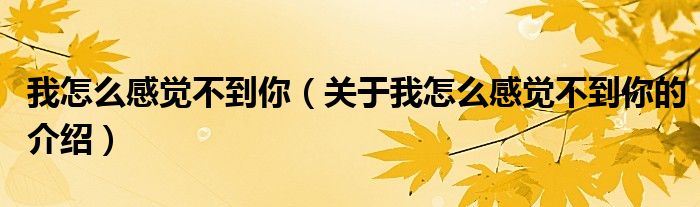 大家好,小安来为大家解答以上的问题。我怎么感觉不到你,关于我怎么感觉不到你的介绍很多人还不知道,现在让我们一起来看看吧!
