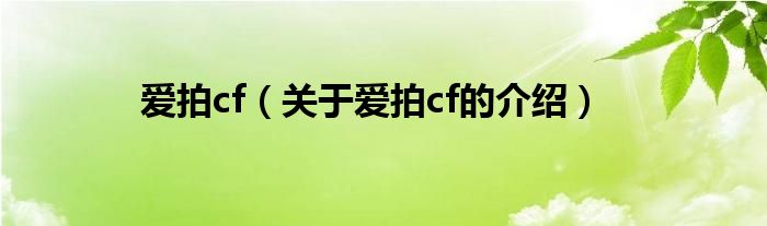 大家好,小安来为大家解答以上的问题。爱拍cf,关于爱拍cf的介绍很多人还不知道,现在让我们一起来看看吧!