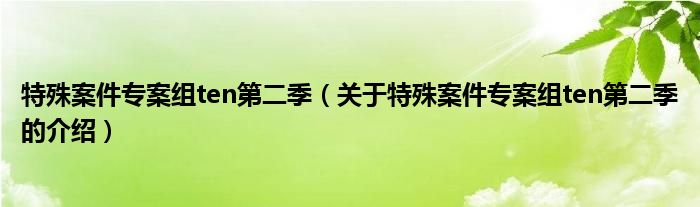 大家好,小安来为大家解答以上的问题。特殊案件专案组ten第二季,关于特殊案件专案组ten第二季的介绍很多人还不知道,现在让我们一起来看看吧!