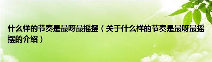 大家好,小安来为大家解答以上的问题。什么样的节奏是最呀最摇摆,关于什么样的节奏是最呀最摇摆的介绍很多人还不知道,现在让我们一起来看看吧!