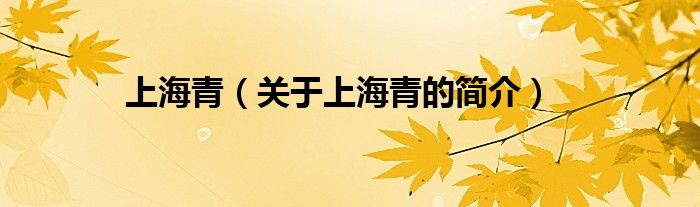 大家好,上海青,关于上海青的简介很多人还不知道,现在让我们一起来看看吧!