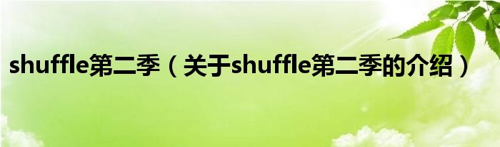 大家好,小安来为大家解答以上的问题。shuffle第二季,关于shuffle第二季的介绍很多人还不知道,现在让我们一起来看看吧!