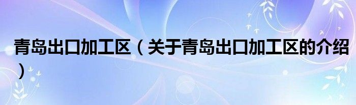 大家好,小安来为大家解答以上的问题。青岛出口加工区,关于青岛出口加工区的介绍很多人还不知道,现在让我们一起来看看吧!