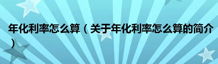 本文关于年化利率怎么算的简介就讲解完毕,希望对大家有所帮助。