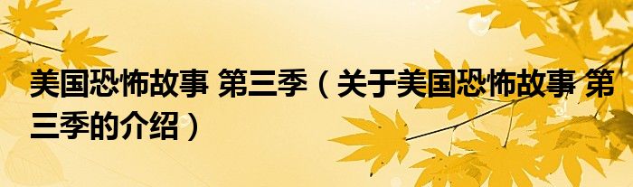 大家好,小安来为大家解答以上的问题。美国恐怖故事 第三季,关于美国恐怖故事 第三季的介绍很多人还不知道,现在让我们一起来看看吧!