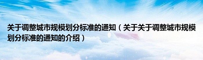 大家好,小安来为大家解答以上的问题。关于调整城市规模划分标准的通知,关于关于调整城市规模划分标准的通知的介绍很多人还不知道,现在让我们一起来看看吧!