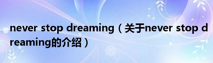 大家好,小安来为大家解答以上的问题。never stop dreaming,关于never stop dreaming的介绍很多人还不知道,现在让我们一起来看看吧!