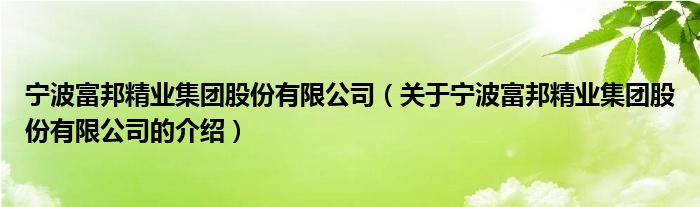 大家好,小安来为大家解答以上的问题。宁波富邦精业集团股份有限公司,关于宁波富邦精业集团股份有限公司的介绍很多人还不知道,现在让我们一起来看看吧!