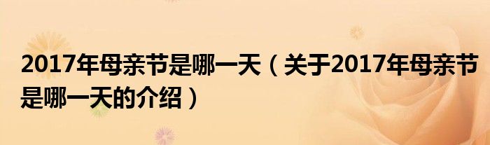 大家好,小安来为大家解答以上的问题。2017年母亲节是哪一天,关于2017年母亲节是哪一天的介绍很多人还不知道,现在让我们一起来看看吧!