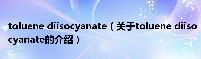 大家好,小安来为大家解答以上的问题。toluene diisocyanate,关于toluene diisocyanate的介绍很多人还不知道,现在让我们一起来看看吧!