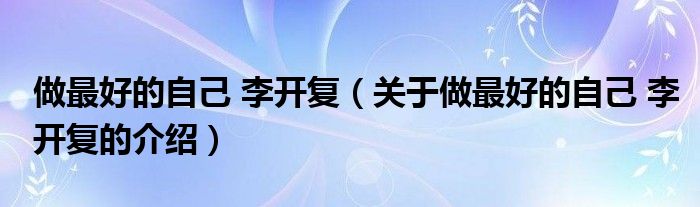 大家好,小安来为大家解答以上的问题。做最好的自己 李开复,关于做最好的自己 李开复的介绍很多人还不知道,现在让我们一起来看看吧!