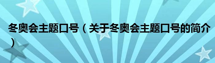 本文关于冬奥会主题口号的简介就讲解完毕,希望对大家有所帮助。