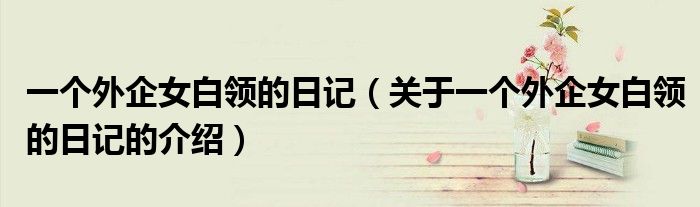 大家好,小安来为大家解答以上的问题。一个外企女白领的日记,关于一个外企女白领的日记的介绍很多人还不知道,现在让我们一起来看看吧!