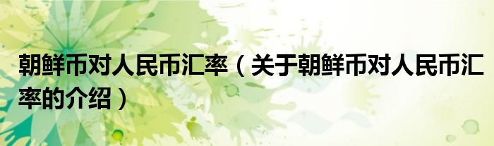 大家好,小安来为大家解答以上的问题。朝鲜币对人民币汇率,关于朝鲜币对人民币汇率的介绍很多人还不知道,现在让我们一起来看看吧!