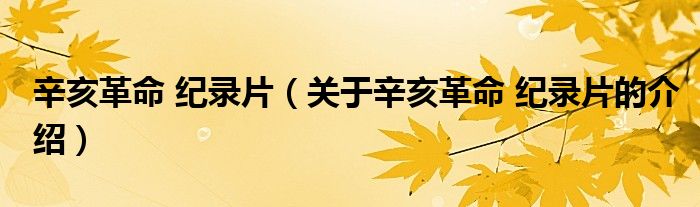 大家好,小安来为大家解答以上的问题。辛亥革命 纪录片,关于辛亥革命 纪录片的介绍很多人还不知道,现在让我们一起来看看吧!
