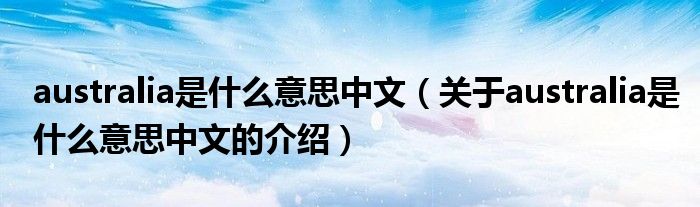 大家好,小安来为大家解答以上的问题。australia是什么意思中文,关于australia是什么意思中文的介绍很多人还不知道,现在让我们一起来看看吧!