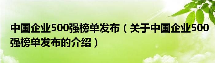 大家好,小安来为大家解答以上的问题。中国企业500强榜单发布,关于中国企业500强榜单发布的介绍很多人还不知道,现在让我们一起来看看吧!