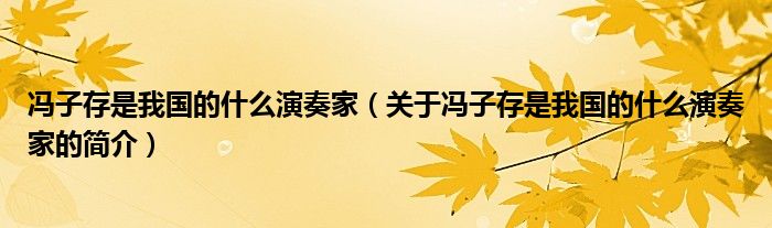本文关于冯子存是我国的什么演奏家的简介就讲解完毕,希望对大家有所帮助。