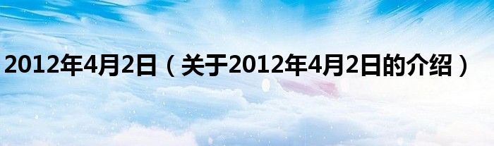 大家好,小安来为大家解答以上的问题。2012年4月2日,关于2012年4月2日的介绍很多人还不知道,现在让我们一起来看看吧!