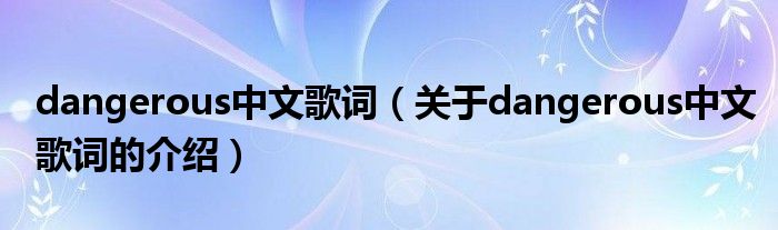 大家好,小安来为大家解答以上的问题。dangerous中文歌词,关于dangerous中文歌词的介绍很多人还不知道,现在让我们一起来看看吧!