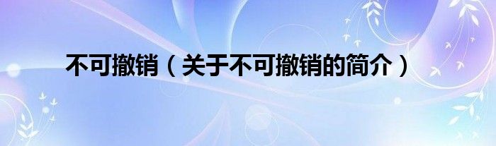 大家好,不可撤销,关于不可撤销的简介很多人还不知道,现在让我们一起来看看吧!