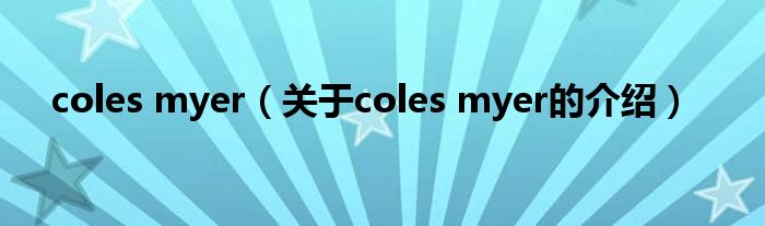 大家好,小安来为大家解答以上的问题。coles myer,关于coles myer的介绍很多人还不知道,现在让我们一起来看看吧!