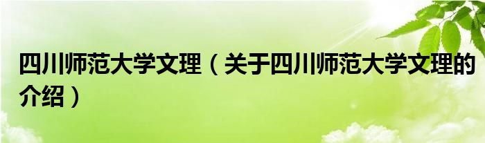 大家好,小安来为大家解答以上的问题。四川师范大学文理,关于四川师范大学文理的介绍很多人还不知道,现在让我们一起来看看吧!