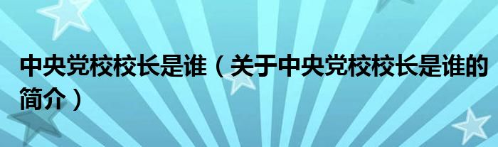 大家好,中央党校校长是谁,关于中央党校校长是谁的简介很多人还不知道,现在让我们一起来看看吧!