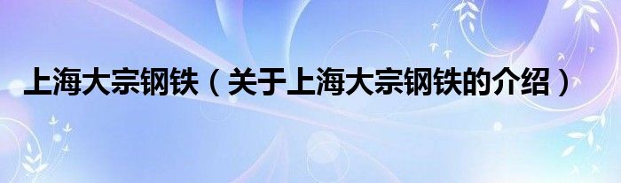 大家好,小安来为大家解答以上的问题。上海大宗钢铁,关于上海大宗钢铁的介绍很多人还不知道,现在让我们一起来看看吧!