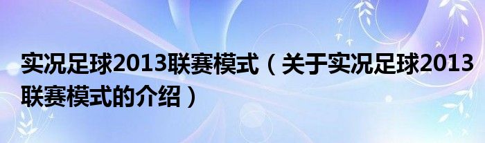 大家好,小安来为大家解答以上的问题。实况足球2013联赛模式,关于实况足球2013联赛模式的介绍很多人还不知道,现在让我们一起来看看吧!