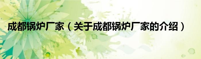 大家好,小安来为大家解答以上的问题。成都锅炉厂家,关于成都锅炉厂家的介绍很多人还不知道,现在让我们一起来看看吧!