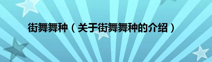 大家好,小安来为大家解答以上的问题。街舞舞种,关于街舞舞种的介绍很多人还不知道,现在让我们一起来看看吧!