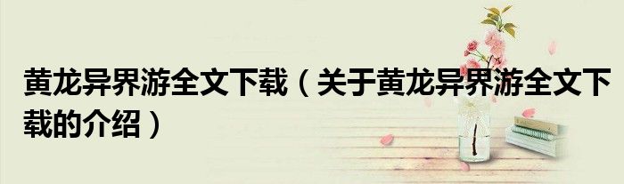 大家好,小安来为大家解答以上的问题。黄龙异界游全文下载,关于黄龙异界游全文下载的介绍很多人还不知道,现在让我们一起来看看吧!