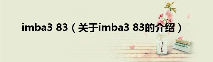 大家好,小安来为大家解答以上的问题。imba3 83,关于imba3 83的介绍很多人还不知道,现在让我们一起来看看吧!