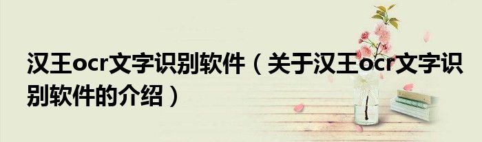 大家好,小安来为大家解答以上的问题。汉王ocr文字识别软件,关于汉王ocr文字识别软件的介绍很多人还不知道,现在让我们一起来看看吧!